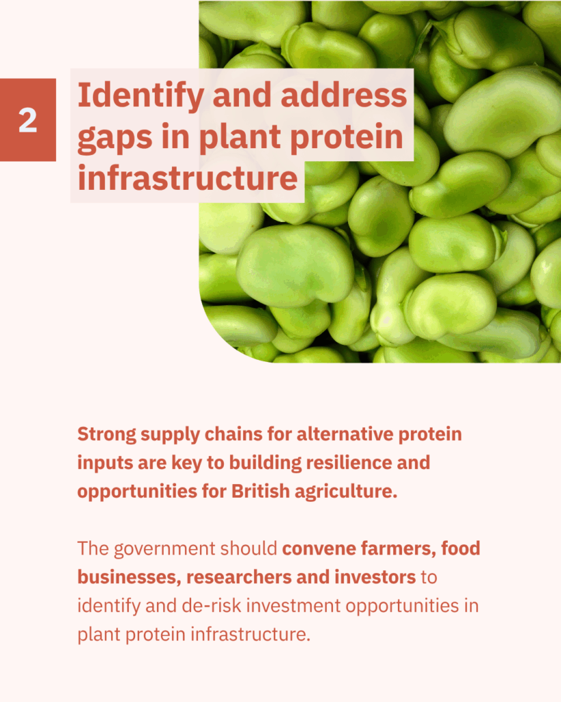 As we set out in our recommendations, the government should bring together farmers, food businesses, researchers and investors to identify the most pressing gaps in the UK’s plant protein infrastructure.