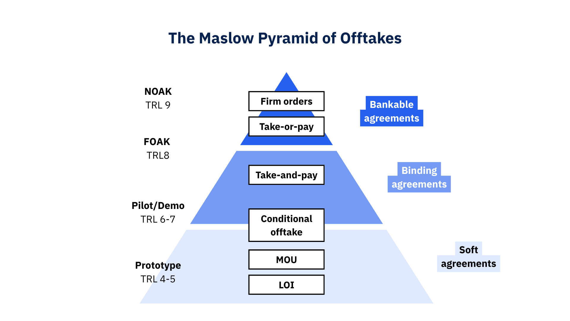 Breaking this cycle means confronting the core challenge: who takes the demand risk. And that’s where creative offtake strategies come in—mechanisms that reduce risk for early buyers, send strong signals to investors, and unlock the capital needed to build.