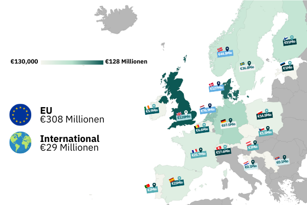Sowohl gemeinnützige als auch gewinnorientierte Organisationen in der DACH-Region wurden entweder direkt über EU-Förderprogramme oder indirekt über EIT Food finanziert. Allerdings sind die direkten Investitionen der EU in DACH-geführte Projekte mit insgesamt etwa 7 Millionen Euro im Vergleich zu den Gesamtinvestitionen der EU eher gering. Dennoch profitieren die DACH-Forscher aktiv vom Engagement der EU: Alle drei Länder nehmen an entsprechenden Projekten aus der EU-Förderung Horizon Europe teil, darunter FEASTS oder Giant Leaps.