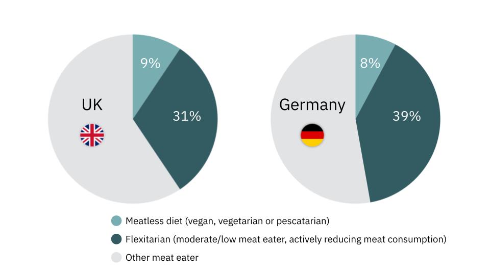 Proportion of consumers in the UK and Germany following meatless or flexitarian diets