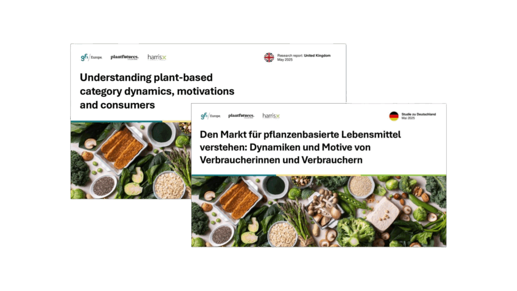 Separate polling in 2024 showed that 47% of German adults report that they are already actively reducing their intake of meat (39%) or following a meatless diet (with 8% identifying as vegan, vegetarian or pescatarian). In the UK, the figure is 41%, with 31% reporting actively reducing their meat intake and 9% saying they follow meatless diets.
